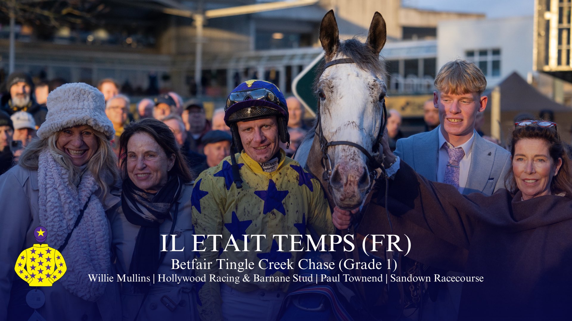 IL Etait Temps Lit up Sandown on Saturday winning the Grade 1 Betfair Tingle Creek Chase by 9 lengths for his owners Hollywood Syndicate and Barnane Stud, trainer Willie Mullins and jockey Paul Townend. The son of Jukebox Jury was purchased privately by Peter & Ross Doyle Bloodstock Ltd. IL Etait Temps might go to Leopardstown [for the Dublin Racing Festival] and from there Cheltenham.